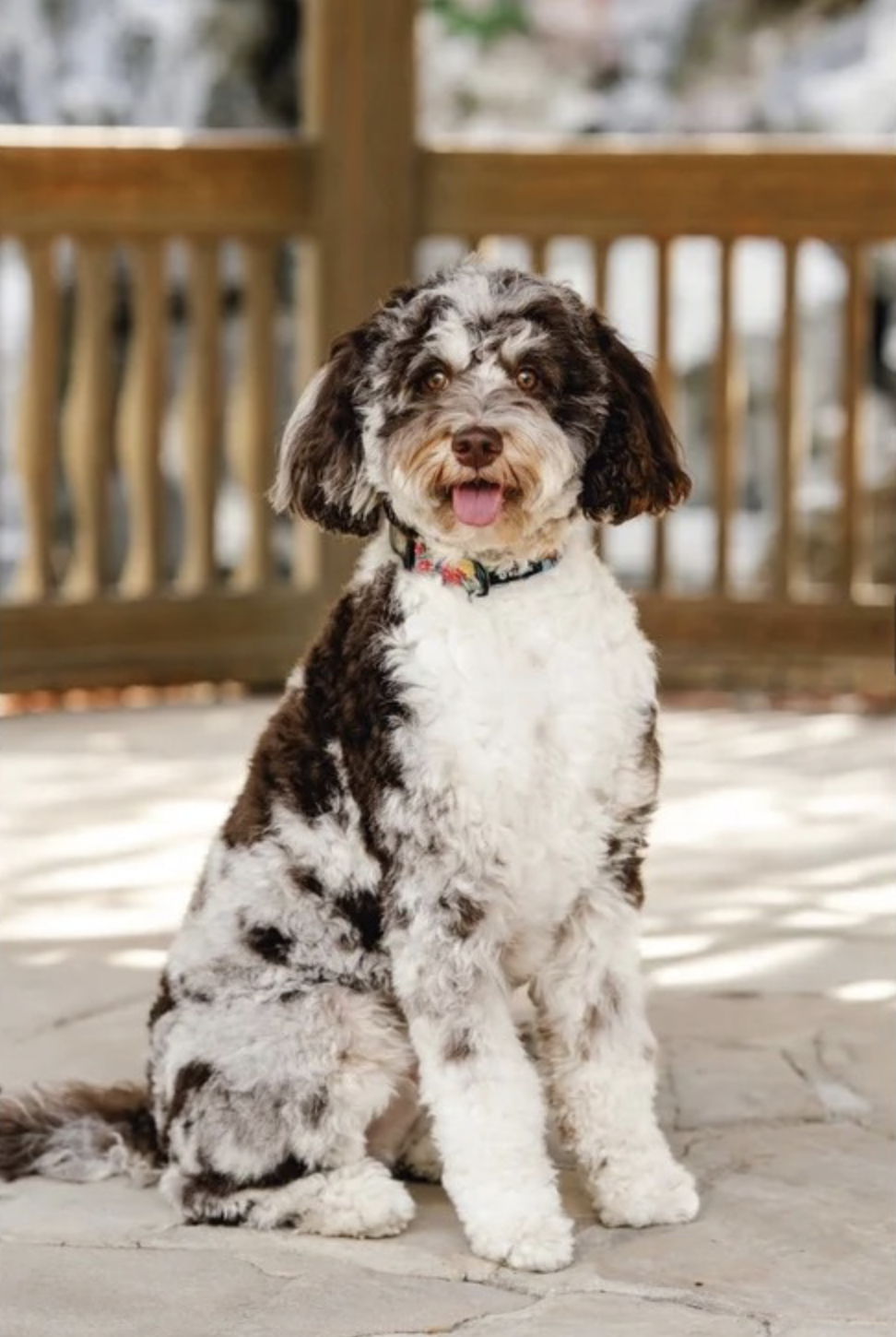 Our stunning mama is a chocolate tri merle Mini Bernedoodle with the sweetest, most nurturing temperament. Reece is gentle, people-loving, and passes on that perfect blend of calm confidence and affectionate charm to her puppies.