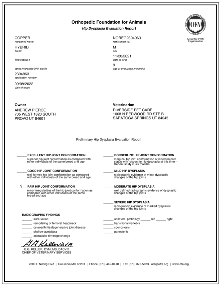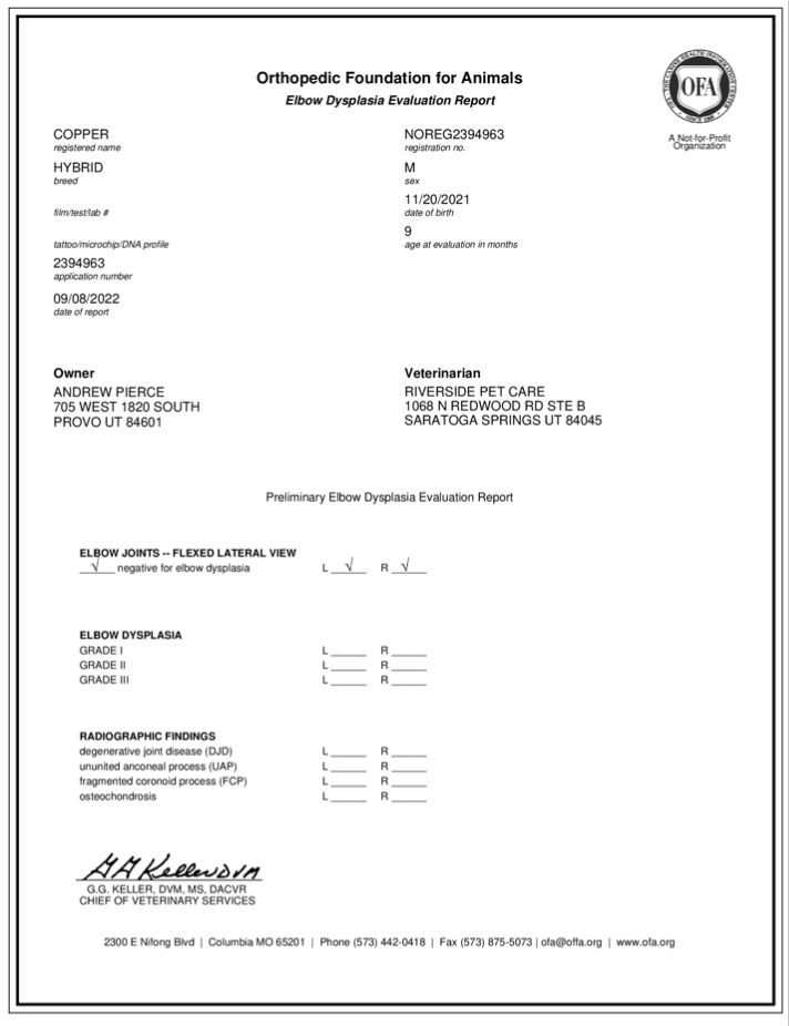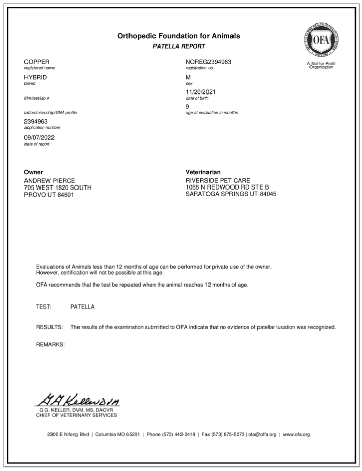 Notify us of pregnancy confirmation and litter size within one week of birth